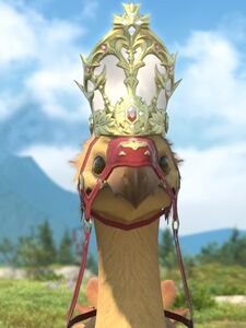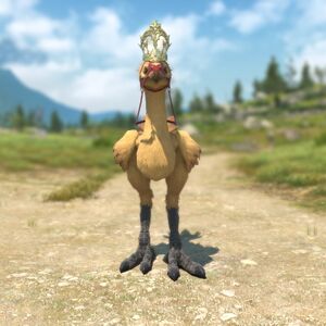 A suit of chocobo armor designed to resemble that of a chocobo king of legend.