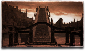 A magnificent altar fashioned in the form of a stairway extending high above Loch Seld, at the top of which worshipers may come face–to–face with the statue of the Destroyer. Formerly a place of piety, it earned a bloody reputation when the mad king Theodoric took to using it as an execution site.