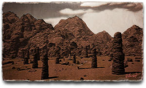 A cluster of ancient stone pillars located near Bardam's Mettle, upon each of which the songs of the peoples of the Steppe are graven. Although the pillars' placement may appear haphazard, when the wind blows through them, they are said to come alive with melodies from ages past.
