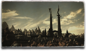 Its name meaning “the emperor's watchtower,” this forbidding military installation is situated at the heart of the mountainous Peaks region. For long years it has cast its menacing shadow over the land and people's hearts both, dominating the skyline as an ever-present reminder of imperial rule.