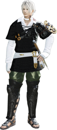 At thirty-two years of age, Thancred fancies himself silver-tongued when it comes to the fairer sex. Many women, however, would beg to differ. His boon companion is a nutkin, who has saved the Archon from several rather embarrassing situations.Unnamed Blades: Obtained through trade in Loth ast Vath, Thancred carries one heavy blade—most likely a salvaged artifact of ancient Allag—and a slim trappers' dagger. Despite being products of necessity rather than choice, the Archon has grown quite fond of the odd pair.