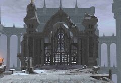 “The main gates to the city of Ishgard are more than mere stone and steel; Ishgardian scripture states that only those who have been judged worthy in the eyes of Halone are granted safe passage into the city as children of the faith.