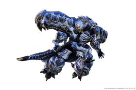 “Mark AEW-I-Z. Although it was the fourth reported instance of the synthetic auracite system being employed in battle, the Diamond Weapon differed from the previous models in that it did not incorporate the combat data of a renowned imperial soldier. The Weapon's shell was created in the early stages of the Weapon project, hence its model number, but systems implementation was delayed until it could be perfected. The final specification incorporated data collected by units that fought the Warrior of Light, and implemented the newly developed Overmind system. A living subject—the orphan known as Alfonse—was fused with the core prior to activation. The Diamond Weapon is also believed to have gained the primal abilities possessed by the previous Weapons, though the exact process used is still shrouded in mystery.