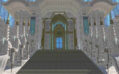 “The Crystal Tower's sole entrance. In places of worship belonging to the Church of the First Light, the Exedra was uniformly overseen by an alter, thus this gate's metaphorical association with the alterpiece.