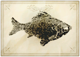 This ancient carp has survived many a fisher's greedy grasp by violently twisting and turning to snap line from bait, leaving the wavekin with an unnatural grin begot by the countless hooks left buried in its maw.