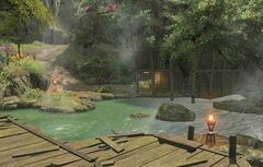 “While few have ever seen the lord of this humble hideaway which rests precariously on the edge of an unscalable precipice—let alone obtained his permission for entering the premises—that has not stopped travelers from taking full advantage of the respite the Hermit's Hovel offers, whether it be a dip in the steaming pools, or a few bells' slumber on the soft goosefeather bed.