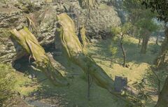 “As if forgotten by Nophica Herself, one mighty tree root endures upon a sheer cliff created by geological upheavals of the Calamity. As this allows fur passage upwards, the Gridanians have seen it as a blessing, and taken to calling it the Matron's Lethe.