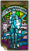 The sturdy gates held for days, but at last they buckled under the relentless onslaught. Charged with the defense of the city, Captain Basqual and his company formed up in the courtyard, and caught the enemy's advance on a wall of shields. As the foc continued to swarm through the breach, however, the captain saw fear blossom in the eyes of his soldiers. Without hesitation, Basqual stripped off his armor, and nimbly skipped along the shield wall in naught but his nameday skin. The sight of the naked captain prancing amongst their ranks caused many an astonished snort - broken free of mounting terror, the soldiers fought to protect their exposed superior, and in their resolve succeeded in repelling the invaders. Celebrated for his devotion to maintaining morale, Basqual was raised up as a saint blessed of Byregot.