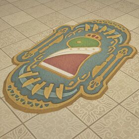 “A rancorous oval rug woven in a tonberry king motif.