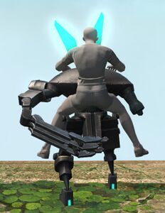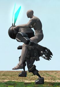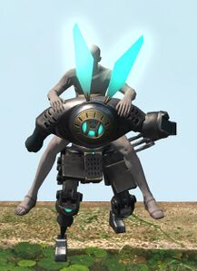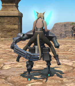 This advanced bipedal machina was found wandering the Carteneau Flats by a quartermaster of the Eorzean Alliance. While it bears a striking resemblance to Allagan clockwork soldiers, it appears to have been enhanced by unknown hands (or paws).— In-game description