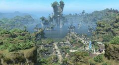 Known primarily for the spectacular floating ruins of Nym which can be viewed all along the territory's northwestern edge, this area stretches to the north of La Noscea's inner regions, and rises slightly in elevation towards the mountain of O'Ghomoro.