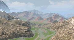 “In the Yok Huy tongue, its name means “mountains most high blooming with all the world's colors.” The sight of rainbow strata arising from a carpet of vivid flowers is almost illusory in its brilliance. Its slopes, steeped in ambient aether, have been revered by the giants as a sacred site for centuries uncounted.